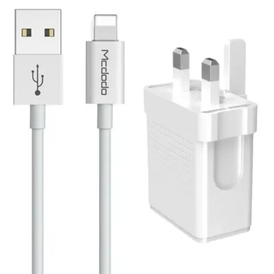 شارژر دیواری دو پورت و کابل لایتنینگ مک دودو Mcdodo CH-5720 Dual USB Travel Charger Set UK