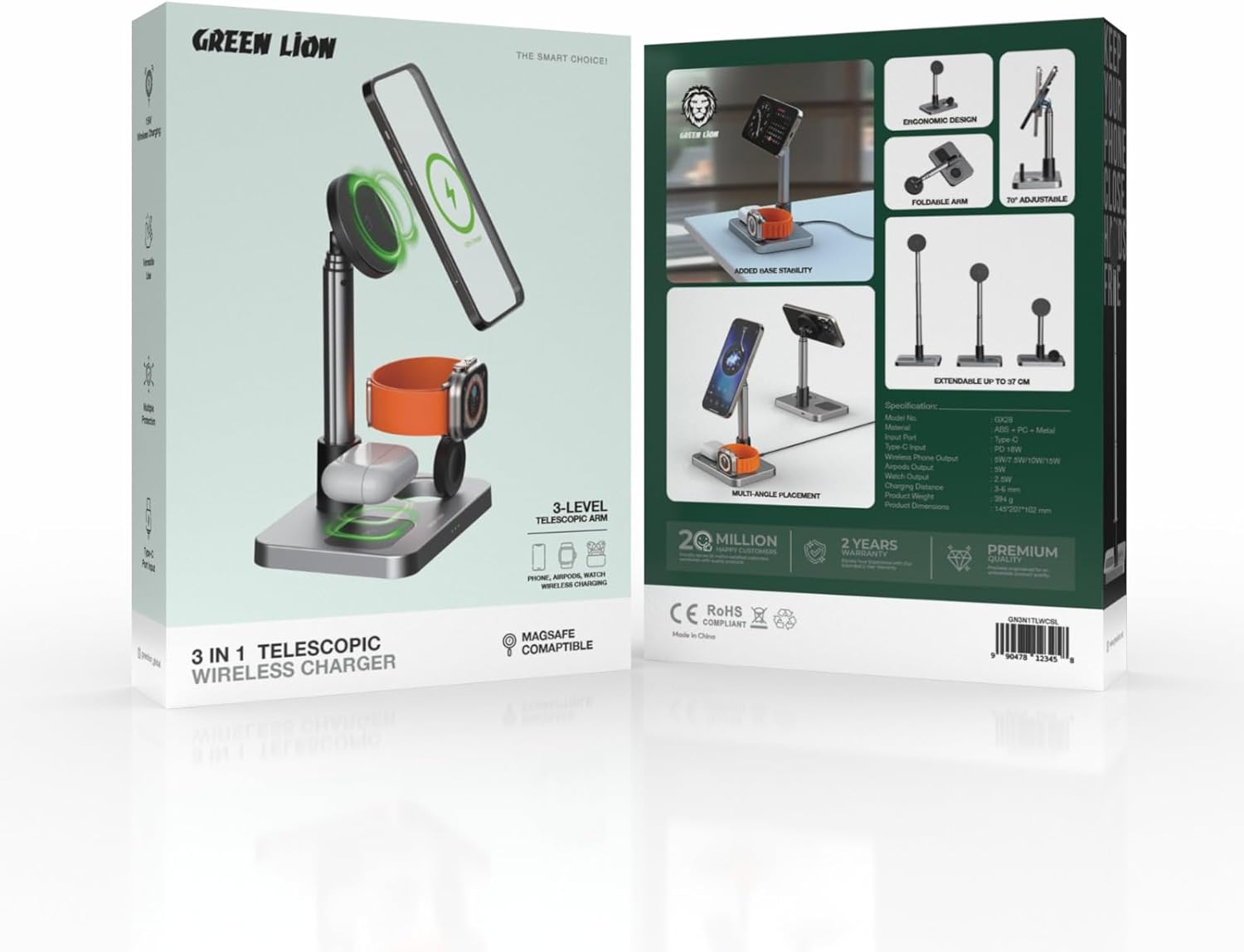 GREEN LION 3-IN-1 TELESCOPIC WIRELESS CHARGER – GX28