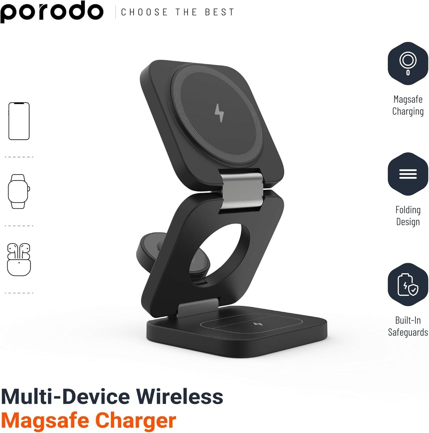 استند و شارژر وایرلس چندگانه پرودو مدل Porodo Multi-Device WIreless Magsafe Charger