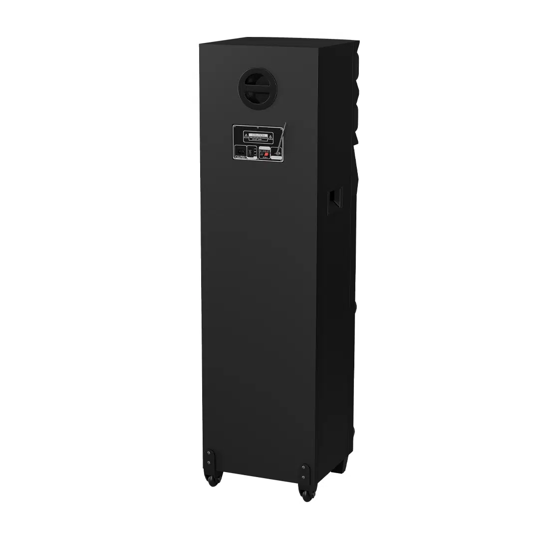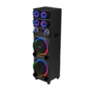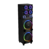 • ویژگی‌ها: رادیو FM، نورپردازی LED، پنل تنظیم حرفه‌ای صدا (باس، تریبل، اکو، میکروفون)، قابلیت ضبط، TWS، اولویت میکروفون، ریموت کنترل، نمایشگر کوچک