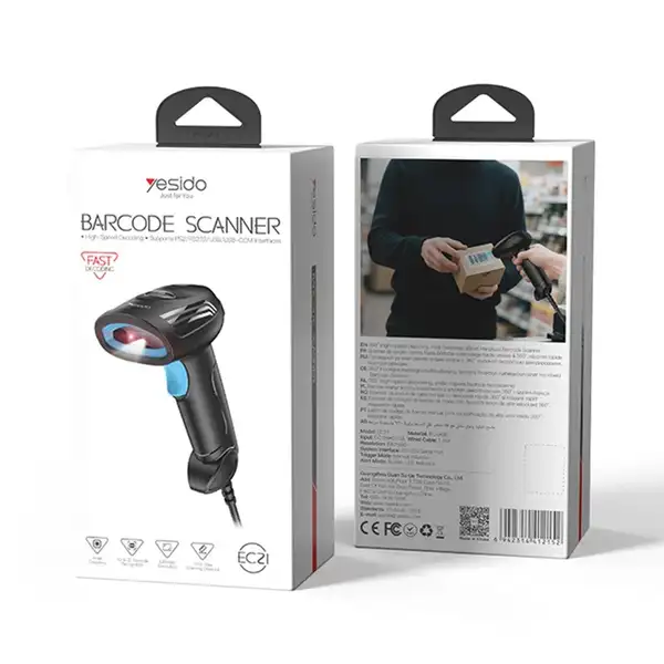 اسکنر بارکد 1D و 2D با اتصال سیمی و طراحی دستی یسیدو مدل Yesido EC21