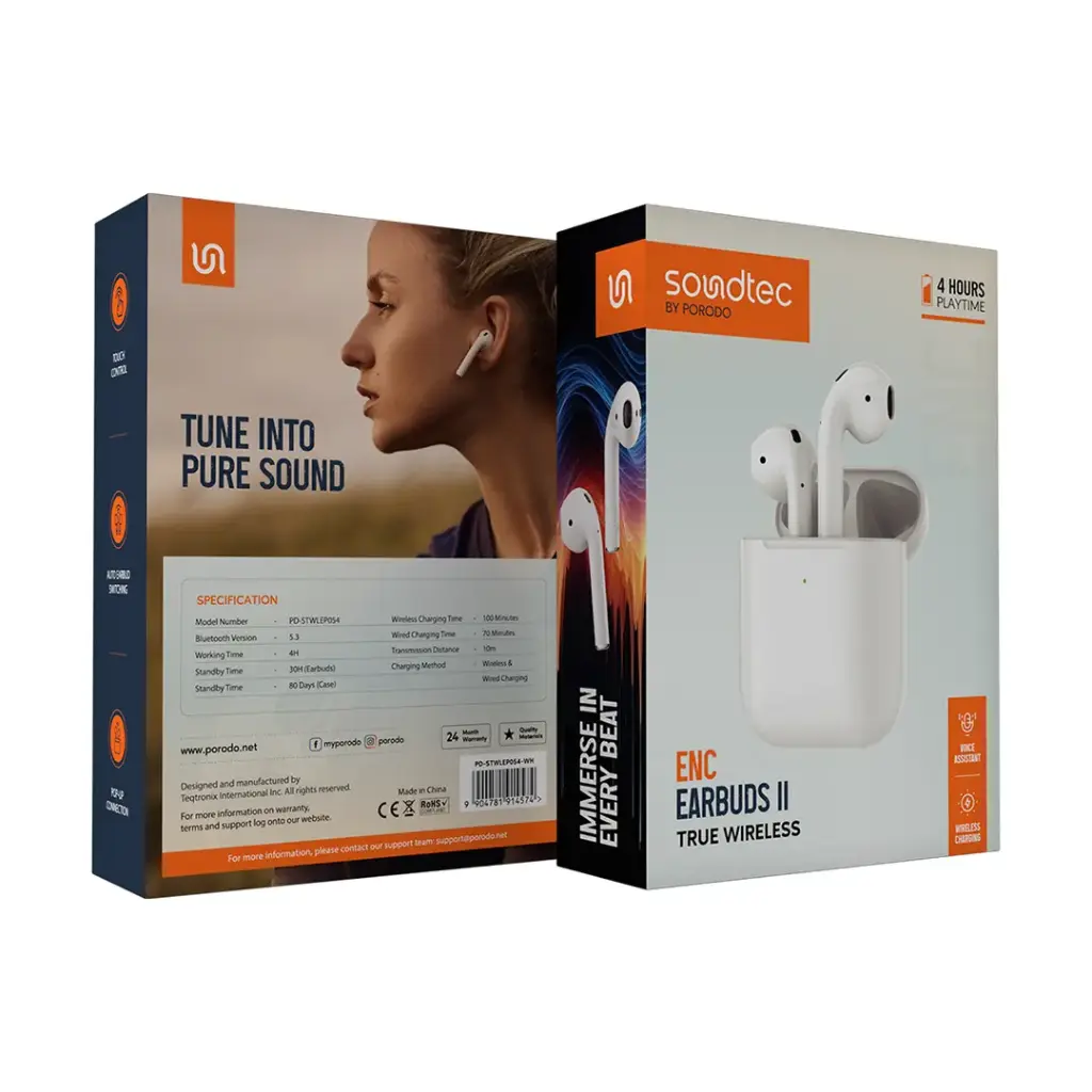ایرپاد Porodo Soundtec ENC Earbuds 2 به شما امکان میدهد از آزادی بیسیم و کیفیت صدای خوب در هر زمان و مکانی لذت ببرید.