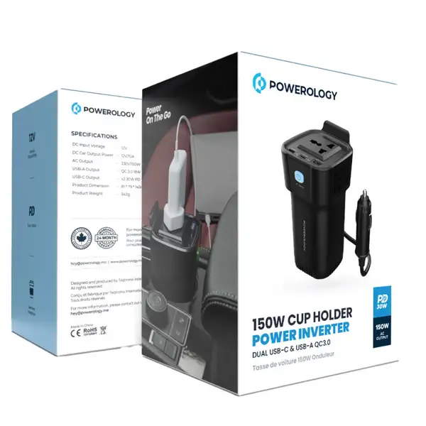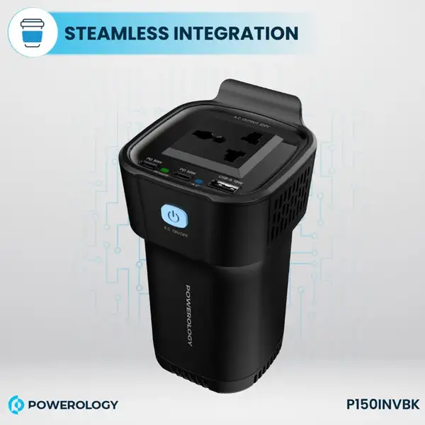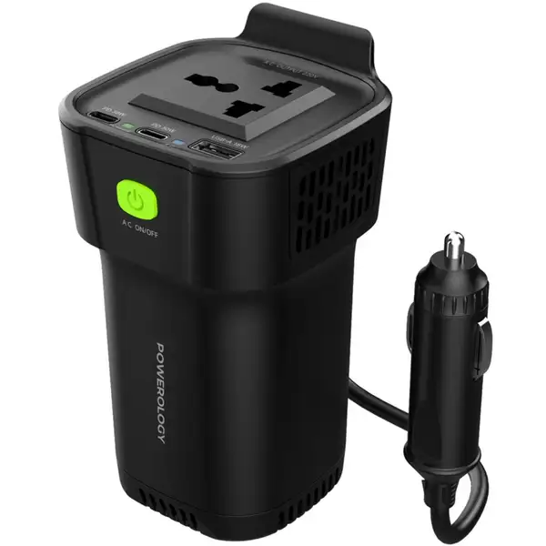 اینورتر Powerology P150INVBK یک ابزار کاربردی برای تبدیل برق خودرو به برق شهری است که با توان خروجی ۱۵۰ وات، مناسب برای استفاده در سفر، کمپینگ، خودروهای کاری و شرایط اضطراری است. طراحی لیوانی آن بهراحتی در جا لیوانی خودرو قرار میگیرد و با پورتهای متنوع، امکان شارژ لپتاپ، گوشی، تبلت و سایر دستگاهها را فراهم میکند.