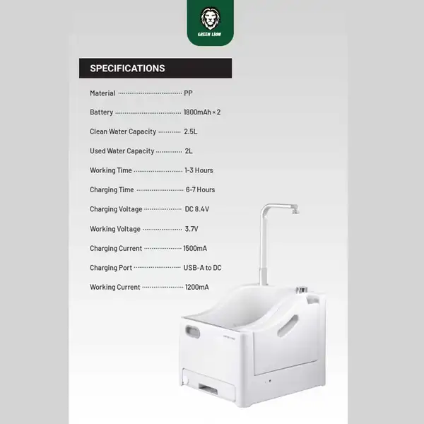 دستگاه شستشو قابل حمل شارژی گرین‌لاین مدل Green Lion GWM-10 GNGW10PWUDWH