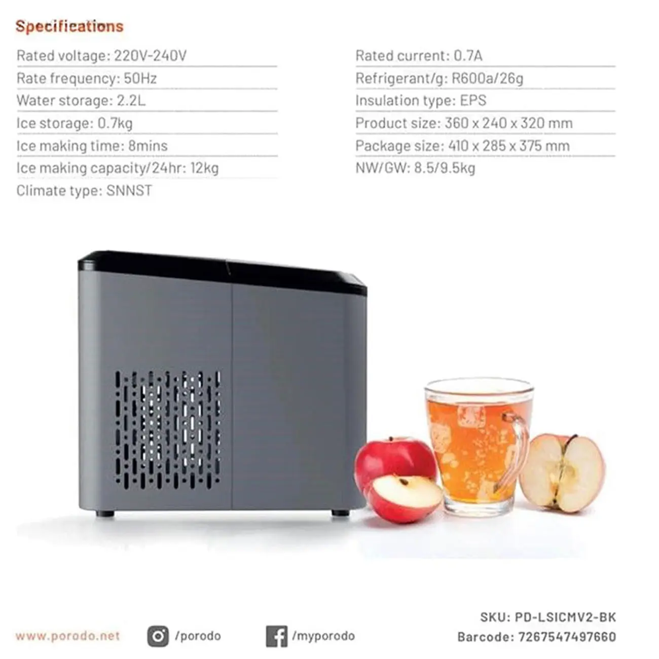 دستگاه یخساز فوری قابل حمل پرودو مدل Porodo PD-LSICMV2 ظرفیت 2.2 لیتر