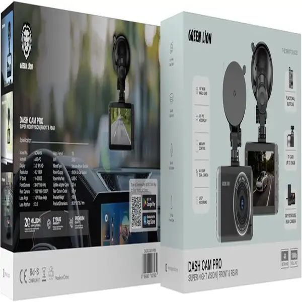 دوربین داشبورد جلو و عقب گرین لاین مدل Green Lion Dash Cam Pro GNDACAM14PBK
