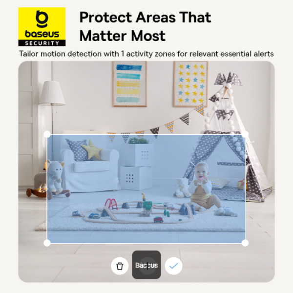این دوربین امنیتی مجهز به سنسور تشخیص حرکت است که به محض شناسایی فعالیت غیرعادی، به طور خودکار اعلان ارسال میکند. علاوه بر این، با سنسور دید در شب میتوانید حتی در تاریکی مطلق نیز به نظارت ادامه دهید. زوم دیجیتال ۸ برابر به شما اجازه میدهد تا روی جزئیات کوچکتر تمرکز کنید و هیچ چیزی از دید شما پنهان نماند. دوربین هوشمند Baseus P1 همچنین دارای میکروفون داخلی است که امکان برقراری ارتباط دوطرفه صوتی را فراهم میکند و میتوانید از راه دور با اعضای خانواده یا حیوانات خانگی خود صحبت کنید.