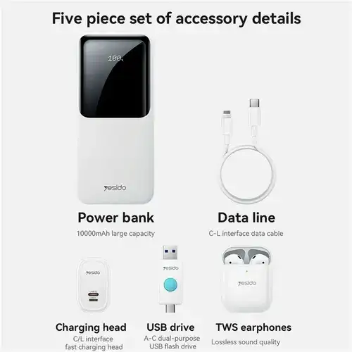 ت کادویی ۵ در ۱ کامبو شارژر یسیدو مدل CG10 – YESIDO CG10 5-in-1 Combo Charger Gift Set