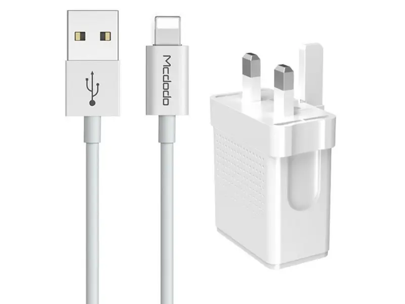 شارژر دیواری دو پورت و کابل لایتنینگ مک دودو Mcdodo CH-5720 Dual USB Travel Charger Set UK