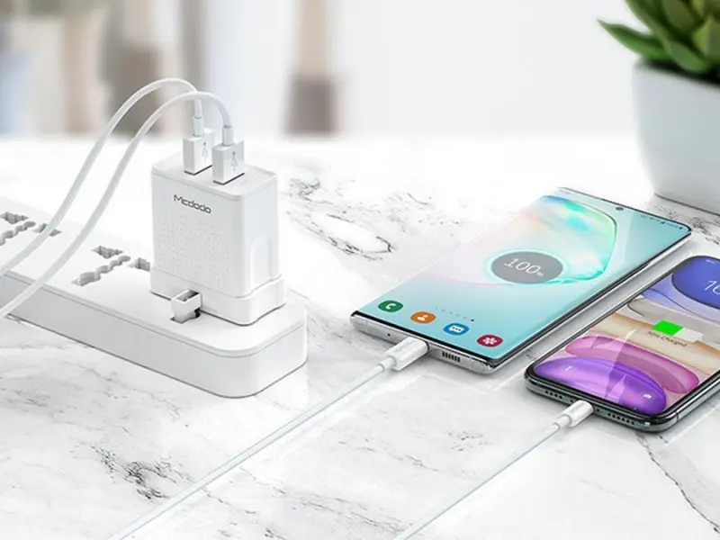 شارژر دیواری دو پورت و کابل تایپ سی مک دودو Mcdodo CH-5722 Dual USB Travel Charger Set UK