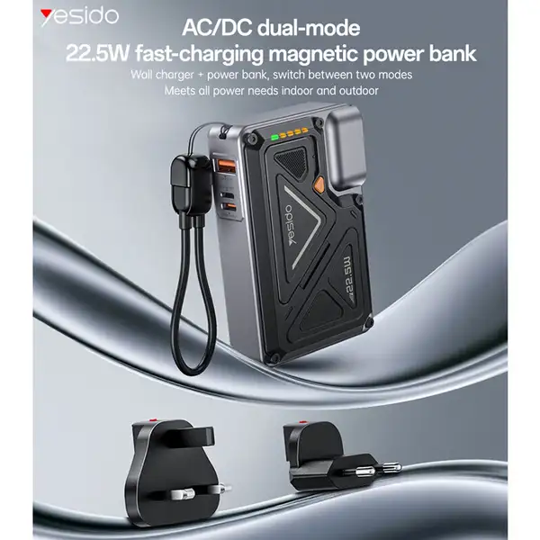 Yesido YP89 PD یک دستگاه ترکیبی هوشمند است که هم بهعنوان شارژر دیواری و هم بهعنوان پاوربانک بیسیم عمل میکند. این مدل با ظرفیت 10000 میلیآمپر ساعت، توان خروجی 22.5 وات و پشتیبانی از فناوری Fast Charge طراحی شده تا نیاز کاربران چنددستگاهی را در خانه، محل کار و سفر پوشش دهد. قابلیت شارژ بیسیم، چندین پورت خروجی و طراحی جمعوجور، آن را به یک انتخاب حرفهای و چندمنظوره تبدیل کرده است.