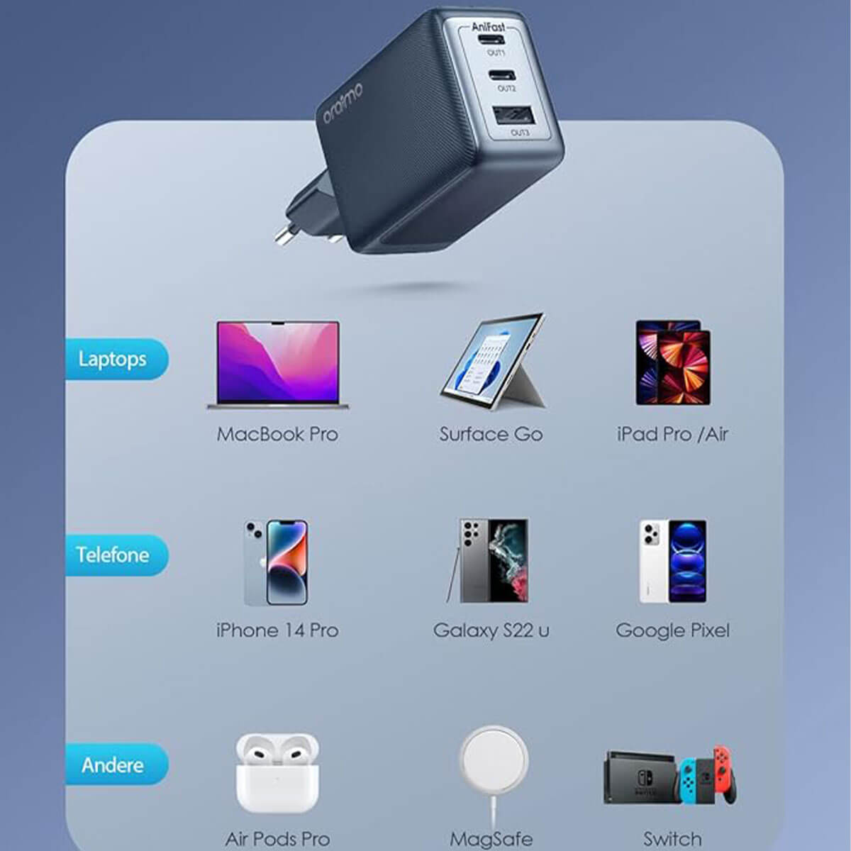 - فناوری شارژ: GaN (گالیم نیترید) با بازده بالا و کنترل حرارتی هوشمند