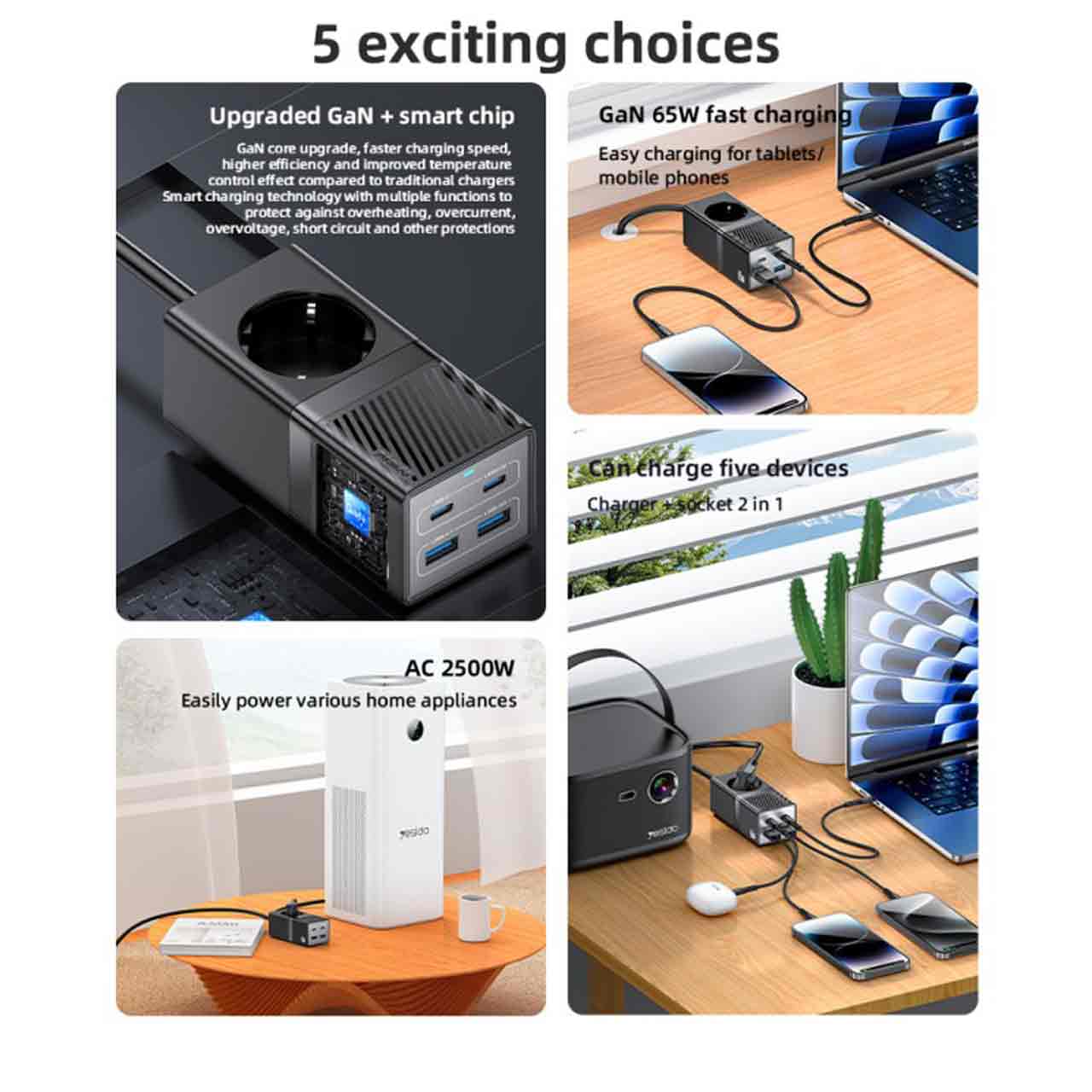 شارژر رومیزی Yesido مدل MC36 با توان 65 وات، یکی از محصولات کاربردی و مدرن برند یسیدو است که برای پاسخگویی به نیاز کاربران امروزی طراحی شده است. این شارژر با برخورداری از پنج درگاه خروجی شامل Type-C، USB و AC، امکان شارژ همزمان چندین دستگاه را به راحتی فراهم میکند و برای محیطهای اداری، خانگی یا حتی سفر گزینهای بسیار مناسب به شمار میآید.