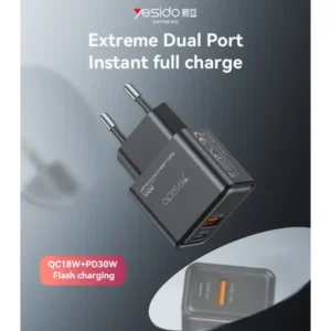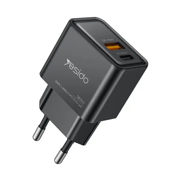 شارژر یسیدو مدل YC64 یک آداپتور سریع و کم‌مصرف با توان ترکیبی 30 وات (PD) و 18 وات (QC) است که با بهره‌گیری از فناوری GaN، راندمان بالا و تولید حرارت کمتر را در ابعادی کوچک ارائه می‌دهد. این مدل با دو پورت خروجی USB‑C و USB‑A، طراحی جمع‌وجور و دوشاخه استاندارد اروپایی، گزینه‌ای مناسب برای شارژ سریع انواع گوشی‌ها، تبلت‌ها و گجت‌های دیجیتال در خانه، محل کار و سفر محسوب می‌شود.