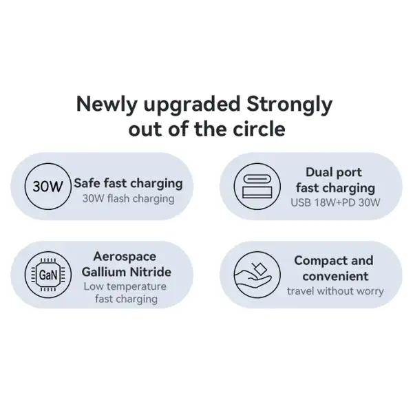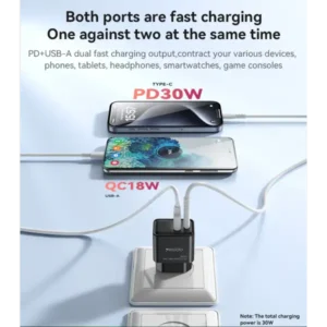 • توان خروجی: 30W (USB‑C PD) + 18W (USB‑A QC)