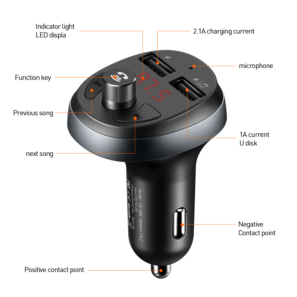 - فرکانس FM قابل تنظیم: ۸۷.۵ تا ۱۰۸MHz | اتصال بیسیم به سیستم صوتی خودرو