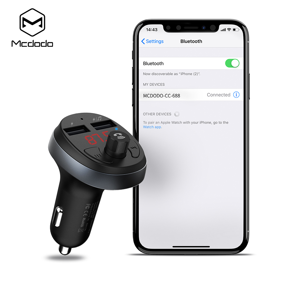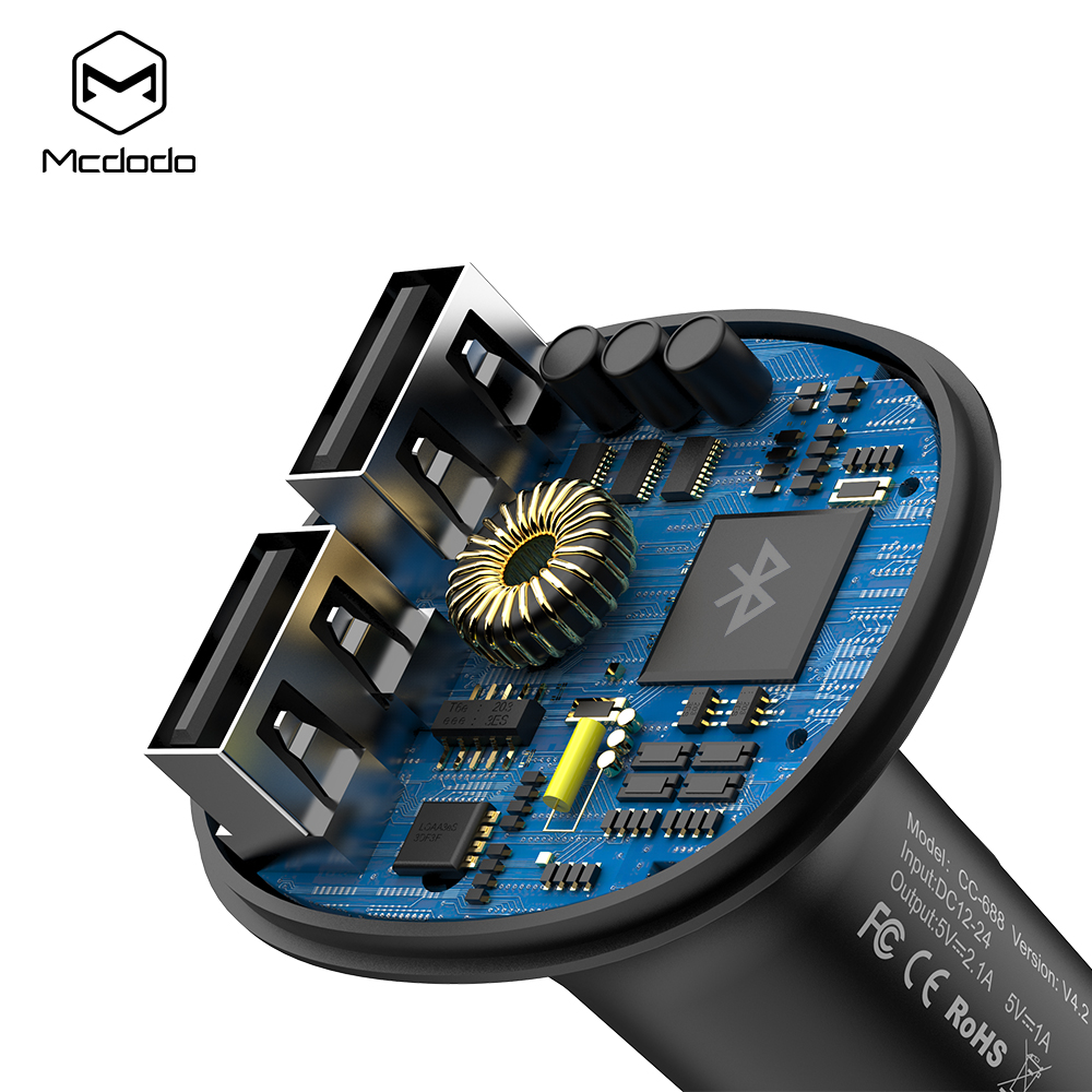 شارژر فندکی فست شارژ و گیرنده بلوتوثی مک دودو Mcdodo CC-688 Bluetooth FM Dual USB Car Charger