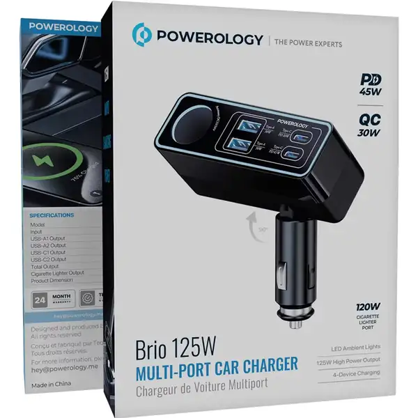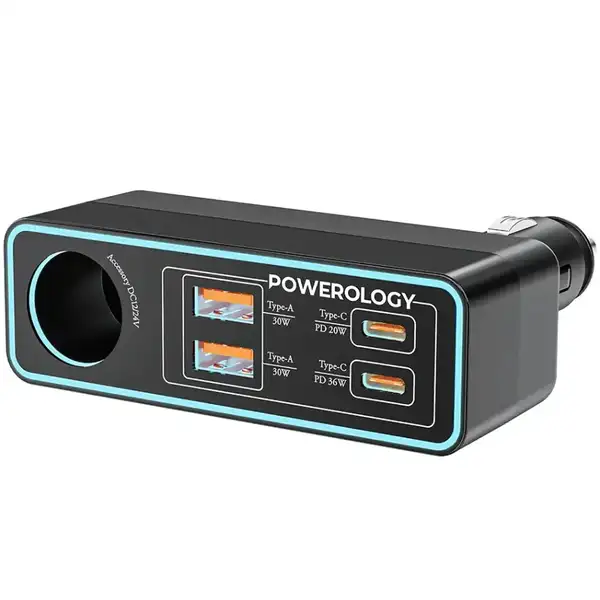 شارژر فندکی پاورولوژی مدل PWDA58BK با توان کلی 120 وات، طراحی چندپورت و پشتیبانی از فناوریهای شارژ سریع، یک انتخاب هوشمندانه برای کسانی است که به دنبال قدرت، سرعت و ایمنی در شارژ دستگاههای خود در خودرو هستند.