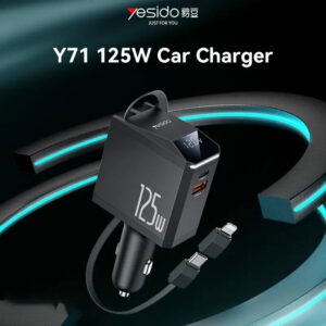 شارژر فندکی Yesido Y71 با توان خروجی 125 وات، کابل تایپسی متصل، نمایشگر دیجیتال و فناوری MultiProtect، انتخابی عالی برای کسانی است که به دنبال یک شارژر خودرو قدرتمند، ایمن و چندکاره هستند. این محصول ترکیبی از سرعت، امنیت و طراحی مقاوم را در اختیار کاربر قرار میدهد و همراهی مطمئن برای سفر و استفاده روزمره خواهد بود.