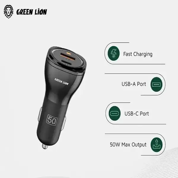 شارژر فندکی خودرو گرین لاین مدل Green Lion 50W Car Charger
