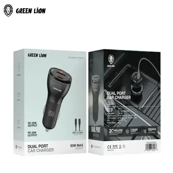 شارژر فندکی 50 وات گرین لاین مدل Green Lion Dual Port