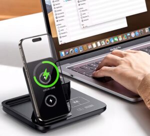 - شارژ بیسیم سهمنظوره برای گوشی، ایرپاد و ساعت