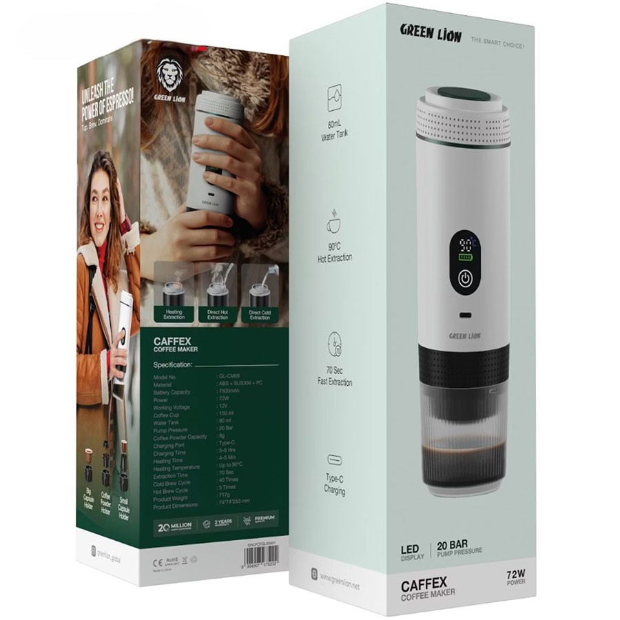 قهوه ساز شارژی 72 وات قابل حمل گرین لاین مدل Green Lion Caffex