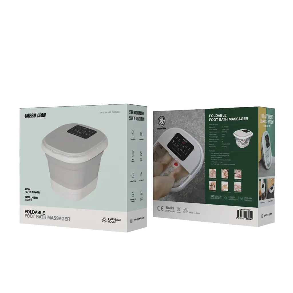 ماساژور تاشو حمام پا گرین لاین (Green Lion Foldable Foot Bath Massager) ابزاری کارآمد و جمعوجور است که ترکیبی از توانایی ماساژ هیدروماساژ و گرمکنندگی آب را در منزل یا محل کار فراهم میکند. این دستگاه با مخزن ۸ لیتری و توان مصرفی ۴۲۰ وات، امکان خیس کردن کامل پاها و تولید حباب، ارتعاش، گرمایش و ماساژ غلتکی را در یک محصول تاشو برای حمل آسان ارائه میدهد. پنل دیجیتال لمسی، دسترسی به چهار حالت ماساژ و تنظیم دمای آب تا ۴۸ درجه سانتیگراد را بدون نیاز به خم شدن یا دستکاری پیچ و مهره ممکن میسازد.