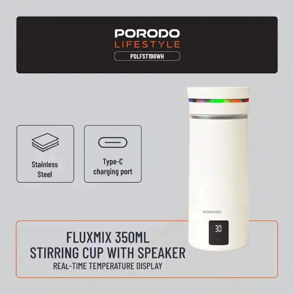 ماگ اسپیکری 350 میلی لیتر پرودو مدل Porodo Lifestyle Fluxmix Stirring Cup with Speaker PDLFST198