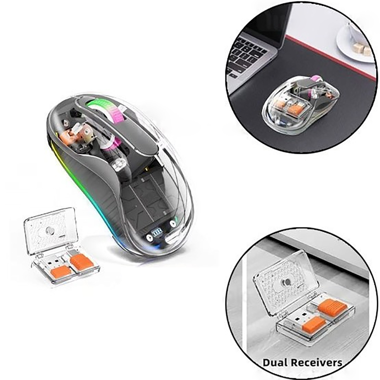 موس بی سیم دوحالته شارژی کوتسی Coteci Magic Crystal Dual Mode Mouse 84011 با بدنه شفاف