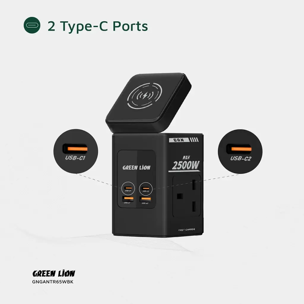 - مدل: Green Lion GaN 65W Multi Port Travel Adapter