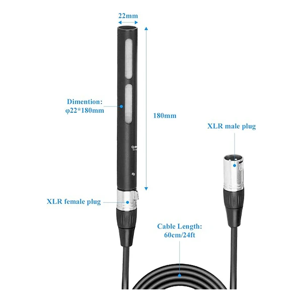 میکروفن شات گان بویا مدل BYBM6040 یک میکروفون شاتگان کوتاه و حرفه ای است که برای ضبط صدای باکیفیت در محیط های مختلف طراحی شده است. این میکروفون ظاهری مدرن، بدنه هایی از جنس آلومینیوم سبک با وزن حدود 99 گرم و طول 180 میلی متر دارد که حمل و استفاده از آن را آسان می کند.