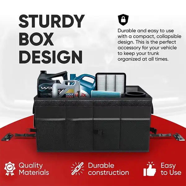 این نظم‌دهنده با داشتن دسته‌های مقاوم، پایه‌های ضدلغزش و درب محافظ، یک انتخاب عالی برای رانندگان حرفه‌ای، خانواده‌ها و افرادی است که به نظم صندوق اهمیت می‌دهند.
