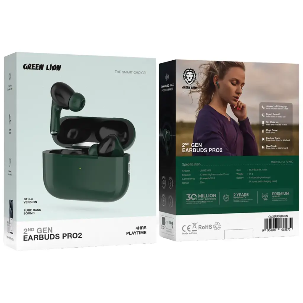 Green Lion Earbuds Pro2 یک هندزفری خوش‌قیمت، سبک و باکیفیت است که با صدای شفاف، اتصال پایدار، طراحی راحت و باتری مناسب، نیاز کاربران روزمره را کاملاً پوشش می‌دهد. اگر دنبال یک ایرباد اقتصادی اما با عملکرد حرفه‌ای هستی، این مدل انتخابی عالی است.