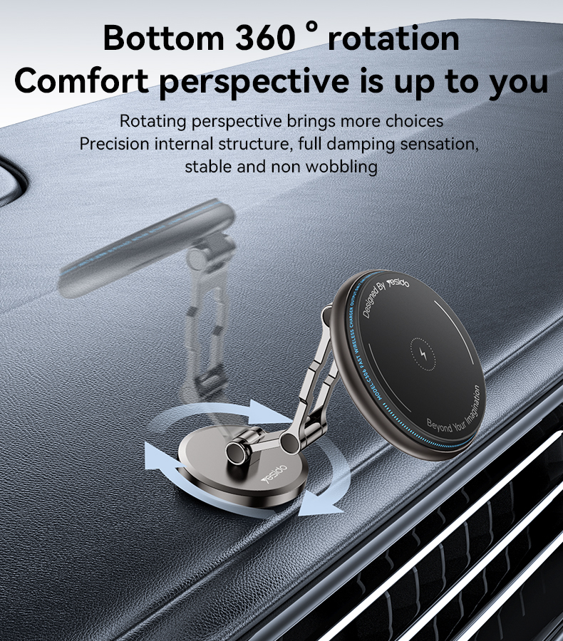 هولدر وایرلس شارژ یسیدو مدل C306 با طراحی فلزی، عملکرد مغناطیسی و توان شارژ سریع، انتخابی عالی برای کاربرانی است که به دنبال راحتی، ایمنی و زیبایی در نگهداری و شارژ گوشی هستند. اگر به دنبال پایه‌ای حرفه‌ای برای خودرو یا میز کار هستید، این مدل می‌تونه گزینه‌ای هوشمندانه باشه.