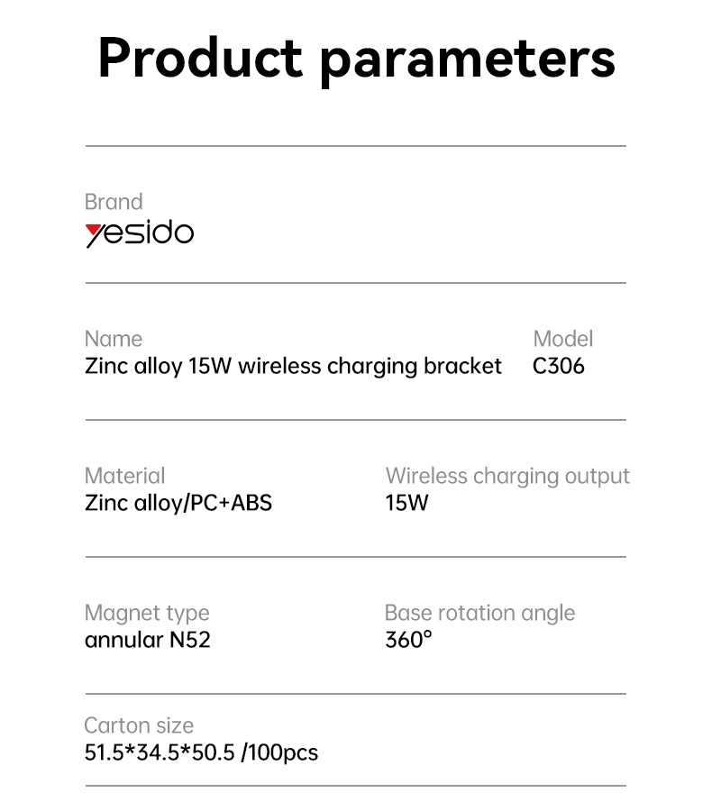 هولدر وایرلس شارژ یسیدو مدل C306 – Yesido C306 Auto Wireless Charging Holder