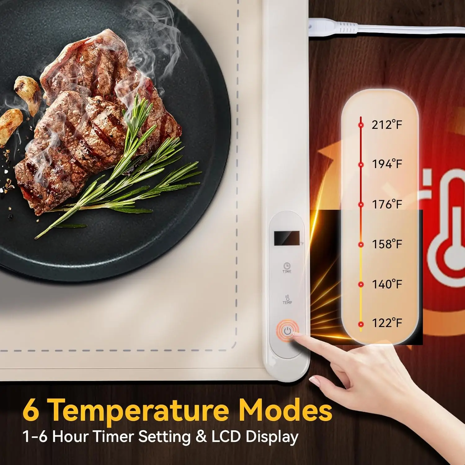 پد Porodo Warming Food Mat با طراحی مینیمال، سطح گرمایش XL، گرمایش فوق‌سریع و سه گزینه دمایی، بهترین همراه برای نگهداری دمای غذا در محیط کار، سفر یا منزل است.