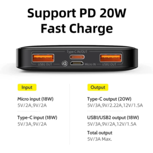 - ظرفیت باتری: 20000mAh (لیتیوم پلیمری)
