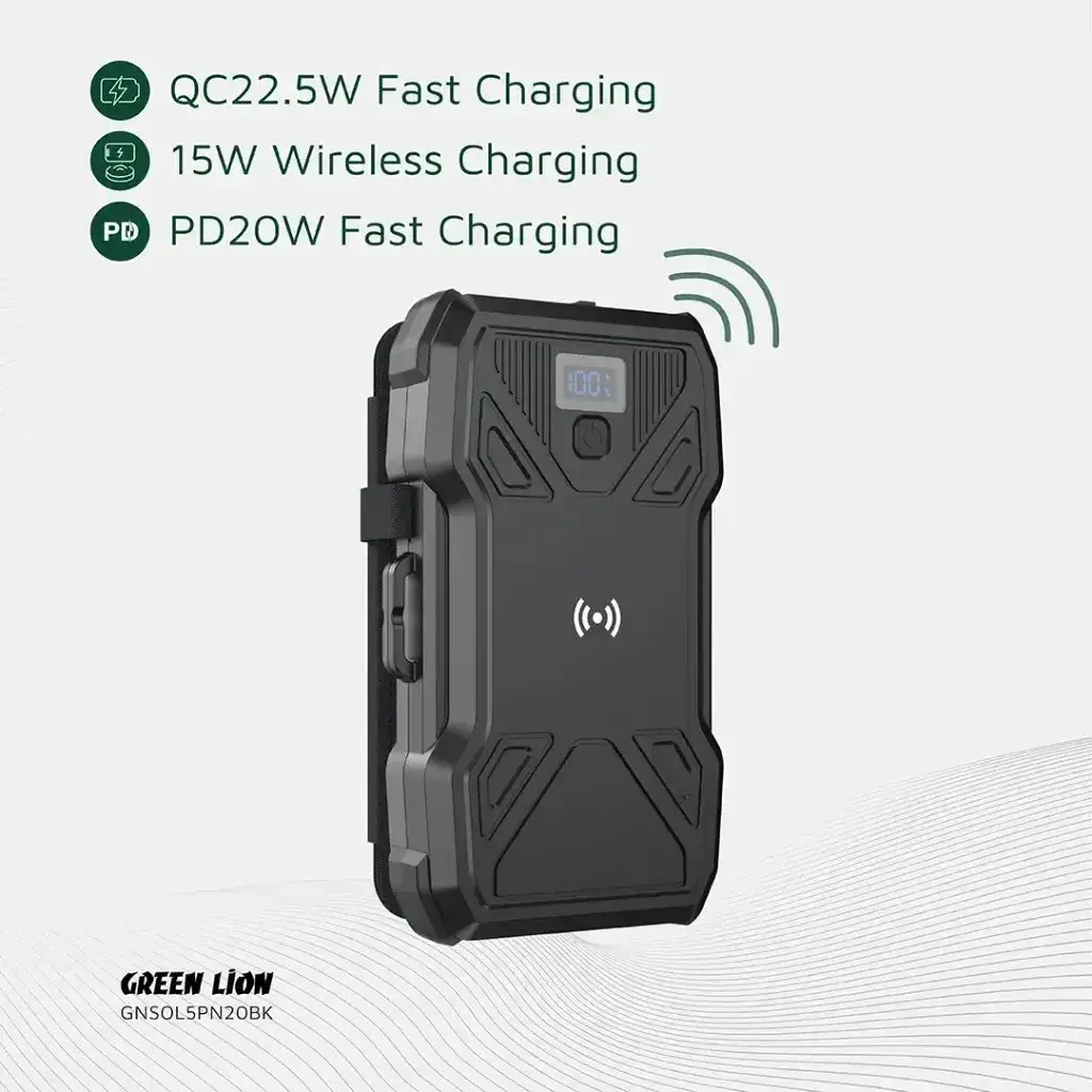 پاوربانک Green Lion Solar 20000mAh با ظرفیت بالا، پنلهای خورشیدی قدرتمند، فناوری شارژ سریع و طراحی مقاوم، انتخابی عالی برای کسانی است که به دنبال یک پاوربانک مستقل، بادوام و کاربردی هستند. این محصول ترکیبی از فناوری، انرژی پاک و راحتی را در اختیار شما قرار میدهد و همراهی مطمئن در سفر، کمپینگ و زندگی روزمره خواهد بود.