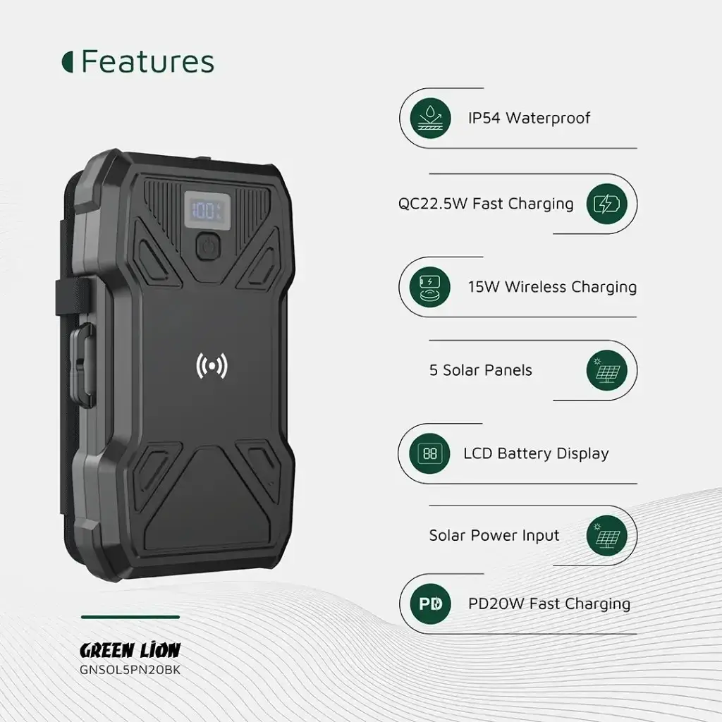 پاوربانک خورشیدی 5 پنل 20000 گرین لاین Green Lion Solar 20000mAh