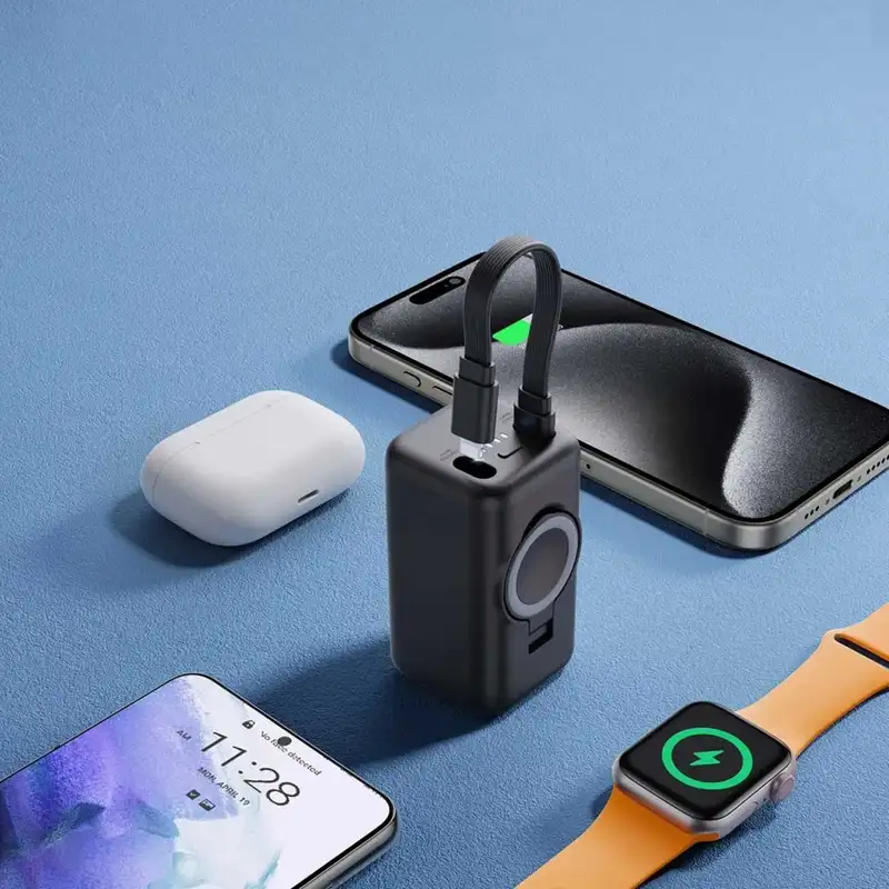 پاوربانک JOYROOM JR-W13 یک شارژر بی‌سیم قابل حمل با ظرفیت 5000 میلی‌آمپرساعت است که برای شارژ هم‌زمان ساعت‌های هوشمند (به‌ویژه اپل واچ) و گوشی‌های موبایل طراحی شده است. این مدل با طراحی جمع‌وجور، پورت‌های USB-C و Lightning، و قابلیت شارژ بی‌سیم مغناطیسی، گزینه‌ای کاربردی برای کاربران فعال، مسافران و علاقه‌مندان به گجت‌های چندمنظوره محسوب می‌شود.