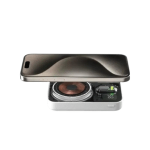 - شارژ همزمان دو دستگاه با استفاده از سطح مغناطیسی و پورت USB-C