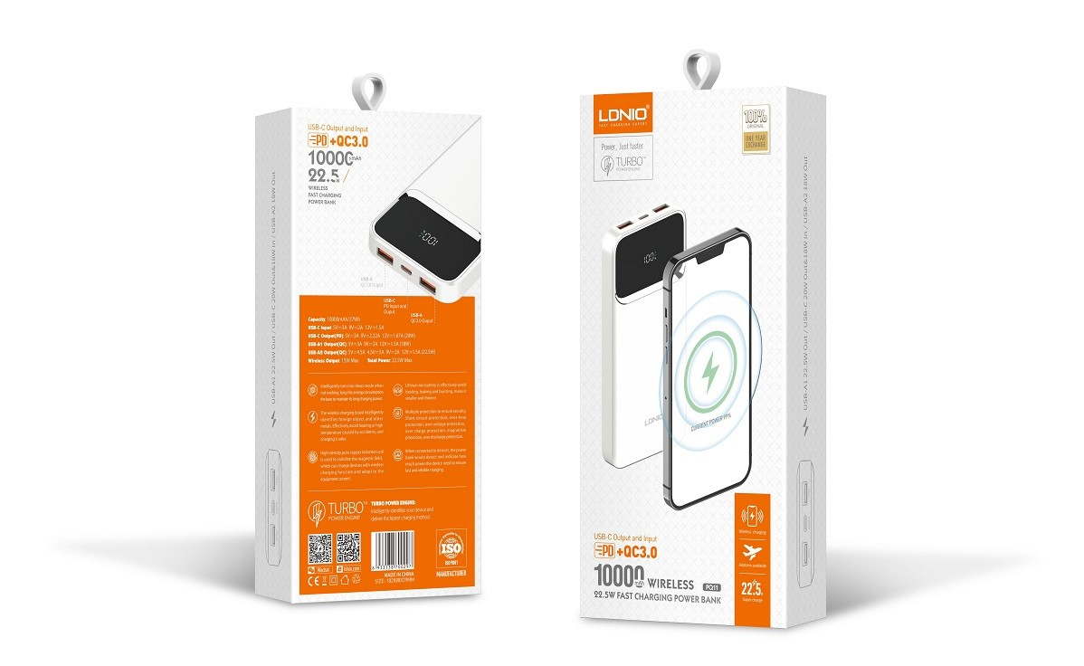 پاوربانک الدینیو LDNIO مدل PQ11 QC3.0 با ظرفیت 10000 میلی‌آمپر ساعت، یک راه‌حل شارژ همه‌کاره برای زندگی پرتحرک شماست. این پاوربانک علاوه بر شارژ سریع از طریق کابل، قابلیت شارژ بی‌سیم را نیز ارائه می‌دهد تا دستگاه‌های شما همیشه آماده به کار باشند.