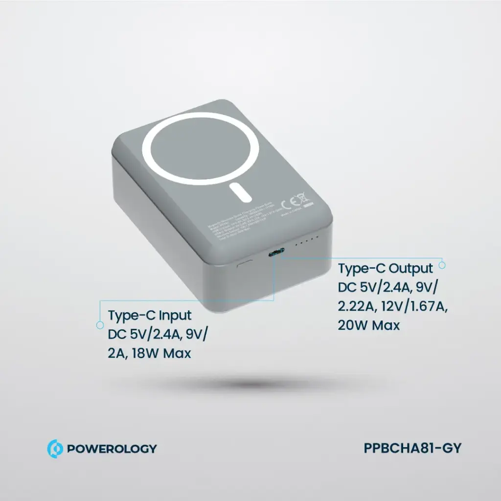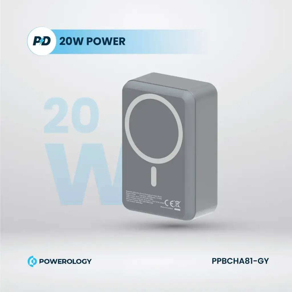 پاوربانک Powerology PPBCHA81-GY یک شارژر همراه پرظرفیت با قابلیت شارژ بیسیم و سیمی است که با فناوری MagSafe، توان خروجی 20 وات و طراحی مقاوم، تجربهای سریع، ایمن و مدرن از شارژ دستگاههای دیجیتال را ارائه میدهد. این مدل برای کسانی طراحی شده که همزمان به عملکرد، زیبایی و دوام اهمیت میدهند.
