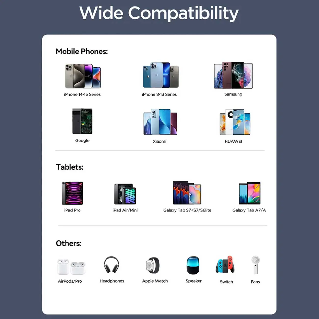 - سازگار با طیف وسیعی از دستگاهها شامل گوشی، تبلت، هدفون و گجتهای پوشیدنی