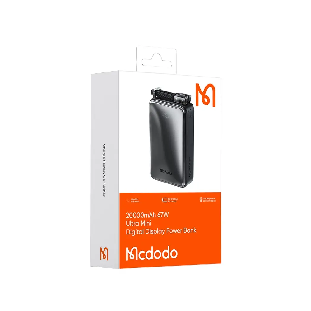 پاوربانک مک دودو مدل MC-4331 با ظرفیت ۲۰٬۰۰۰ میلی‌آمپر، توان شارژ سریع ۶۷ وات، طراحی صنعتی، نمایشگر دیجیتال و فناوری‌های پیشرفته، انتخابی ممتاز برای کاربران حرفه‌ای و پرمشغله است. این مدل با امکانات کامل، کیفیت ساخت بالا و عملکرد بی‌نقص، همراهی مطمئن برای تمام لحظات روز خواهد بود.