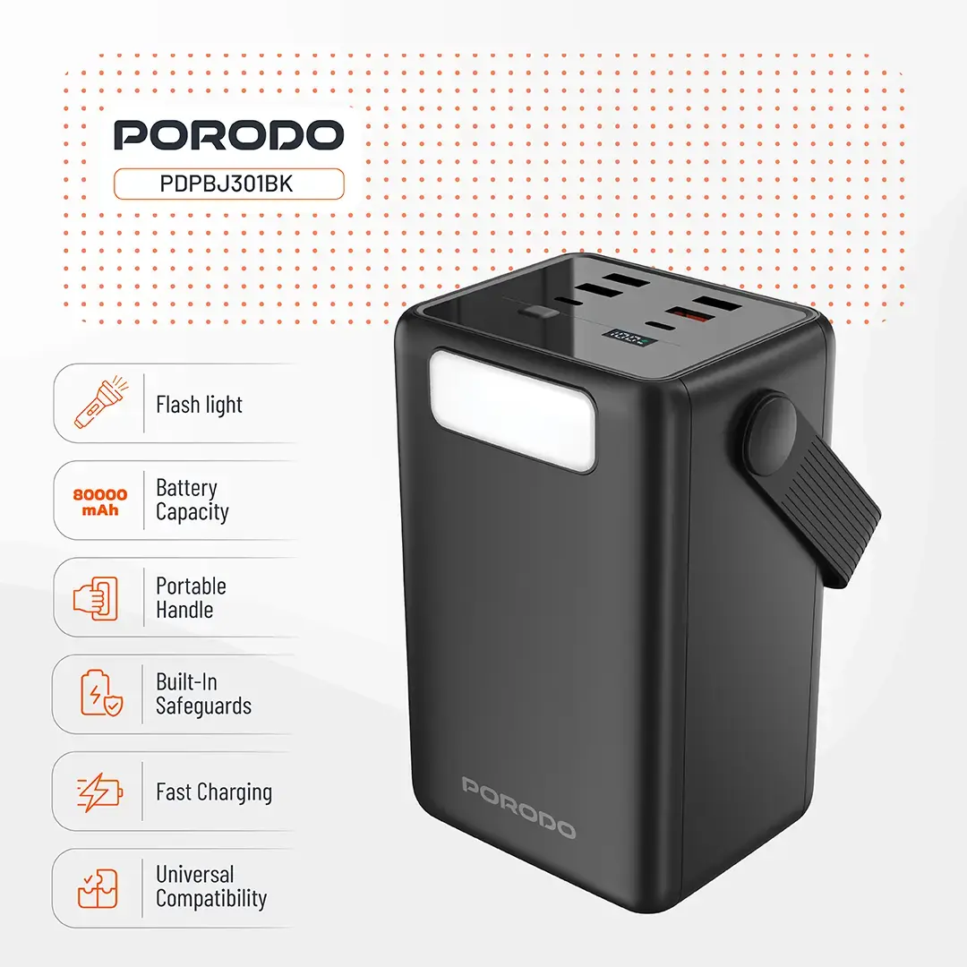 پاوربانک 80000 هزار 20 وات لارا پرودو مدل PORODO LARA 80000 20W POWER BANK PDPBJ261BK