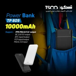 پاور بانک تسکو مدل TP 809 با ظرفیت 10000 میلیآمپر ساعت، طراحی باریک، پشتیبانی از شارژ سریع و قابلیت شارژ همزمان چند دستگاه، یک گزینهی اقتصادی و کاربردی برای کاربران روزمره و حرفهای است. این محصول با ترکیب ظرفیت مناسب، فناوریهای پیشرفته و طراحی مقاوم، انتخابی مطمئن برای کسانی است که به دنبال یک پاور بانک سبک، قابل حمل و قابل اعتماد هستند.