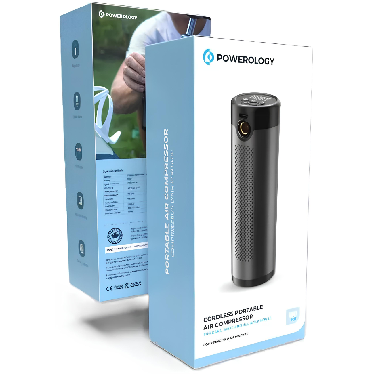 پمپ باد لاستیک خودرو، چراغ قوه و پاوربانک شارژی پاورولوژی Powerology Cordless Portable Air Compressor P52ACMBK