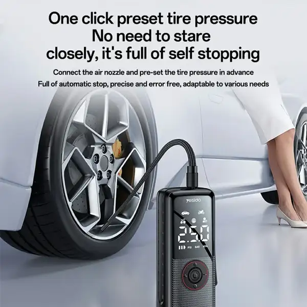 VC17 با داشتن چند نازل مختلف، قابلیت تنظیم فشار و نمایش دقیق PSI/Bar روی صفحه LED، یک ابزار ضروری برای خودرو، سفر، کمپینگ و استفاده روزمره محسوب میشود.